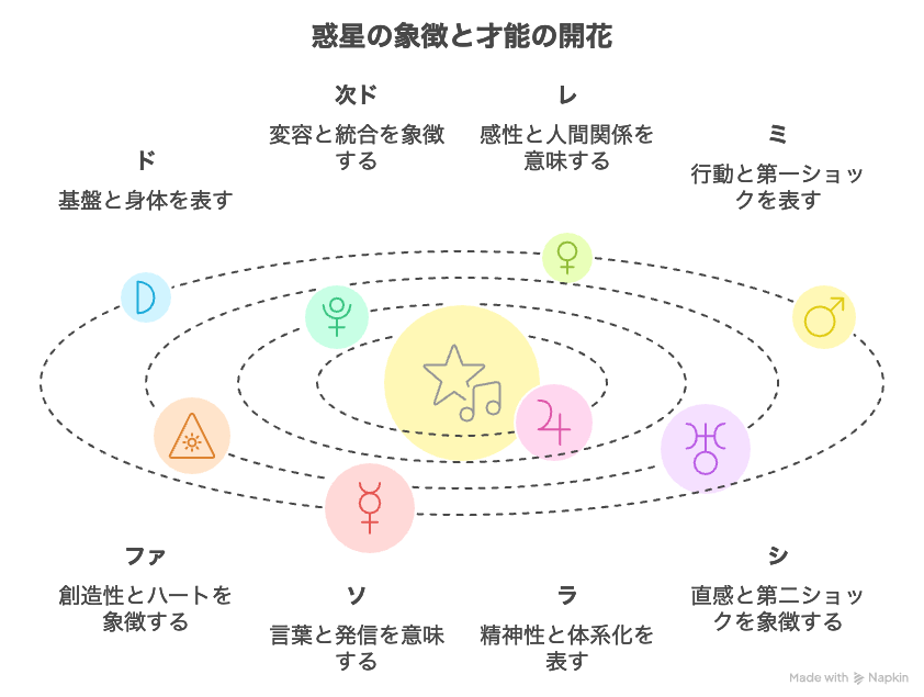 - 2. レ(人間関係): 人と美しく調和し、互いの望みを形にする才能を発見する。