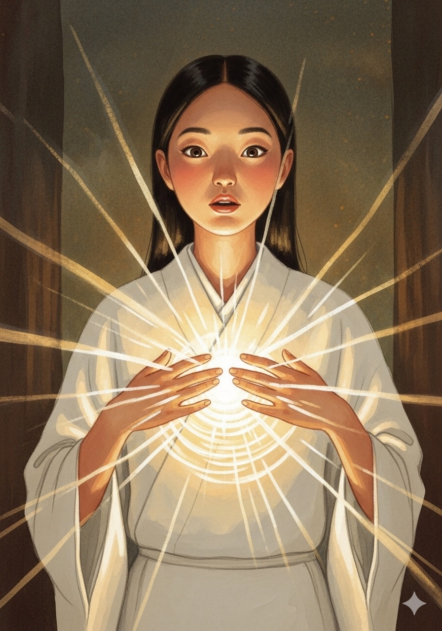 恐れを手放した瞬間、胸の奥で音が生まれる。失われたはずの声――それは懐かしい光の響きだった。