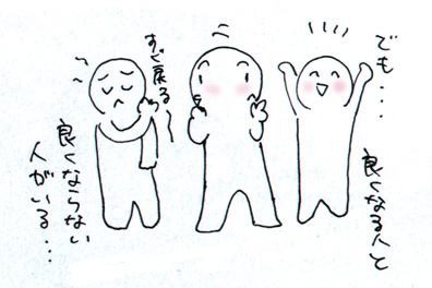 良くなる人と、スグ元に戻って良くならない人がいました。