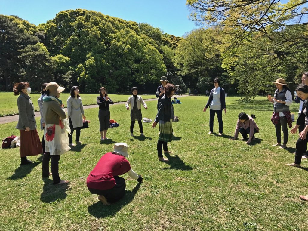 みんなで輪になってあおうえい祝詞でワーク開始。