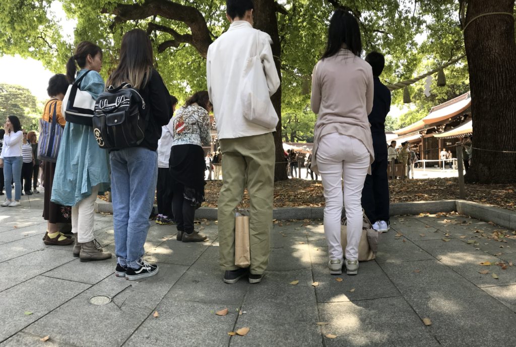 待ち合わせ場所は、JR原宿駅南口をでて徒歩1分の明治神宮 南参道一の鳥居前。